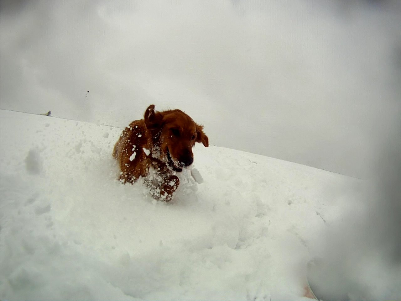 We got up early Sunday morning and headed out through the back country for some unauthorized, out-of-bounds virgin powder snowboarding on Federal government property. Abs had the time of her life.