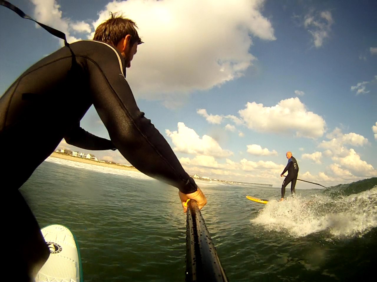 Ralph (aka NCBoardrider.blogspot), local Larry, and I sup surfed from noon until 6 on Saturday 11/6/10 in perfect Fall conditions. Wind was straight offshore all day with chest to head high waves. Ralph is an experienced windsurfer and all-around boardrider now branching out to surfboards and his new 9'0 Naish Mana sup.