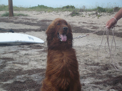 5. Abby accompanied me for the second time and did great. She is becoming a real Hatteras Island veteran. She absolutely loves to chase minnows in the Pamlico Sound while I windsurf. She got to meet Gus, the Canadian Irish Setter. Gus is the only boy I would let Abby date.