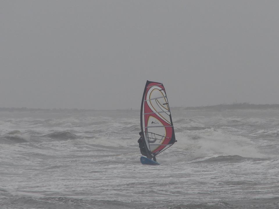 | Heading out Sunday about noon after clocking gusts of 36 mph. Sustained winds were 26 plus. Overpowered on a 4.5/85L but still sailable. |